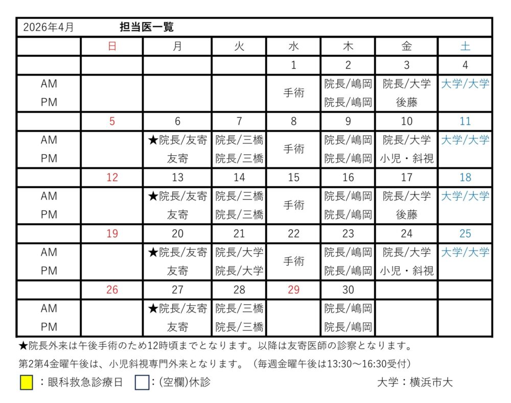 いずれも眼科専門医が担当致します。ご協力のほど何卒宜しくお願い致します。
